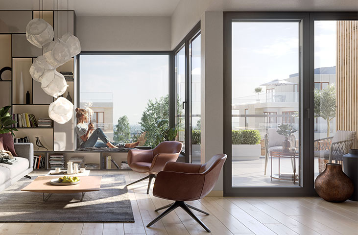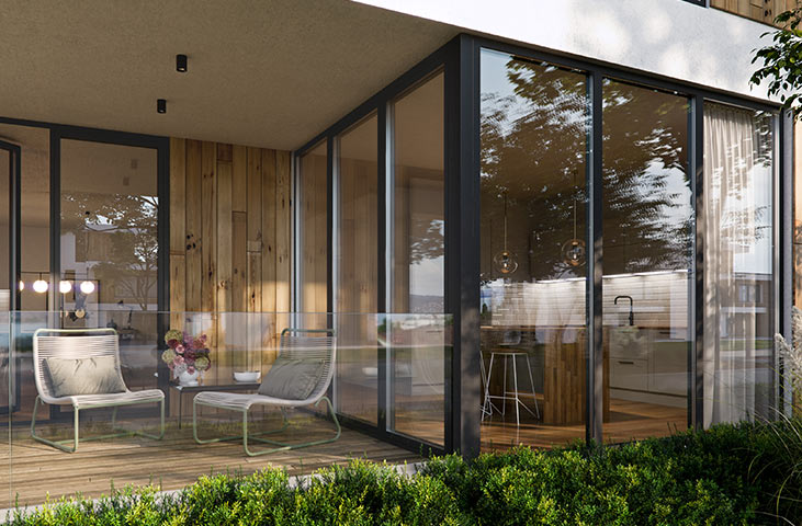 Klassieke geometrie met een modern design dat kenmerkend is voor aluminium systemen.